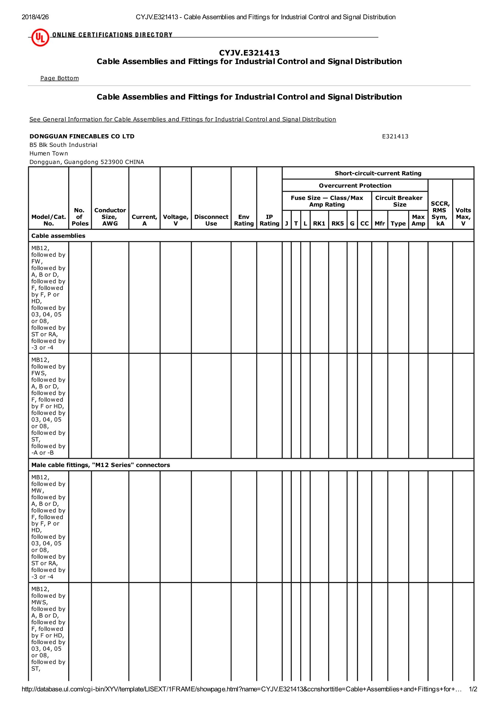 Please refer to UL Certificate link:http://database.ul.com/cgi-bin/XYV/template/LISEXT/1FRAME/showpage.html?name=CYJV.E321413&ccnshorttitle=Cable+Assemblies+and+Fittings+for+Industrial+Control+and+Signal+Distribution&objid=1084511408&cfgid=1073741824&version=versionless&parent_id=1073985281&sequence=1