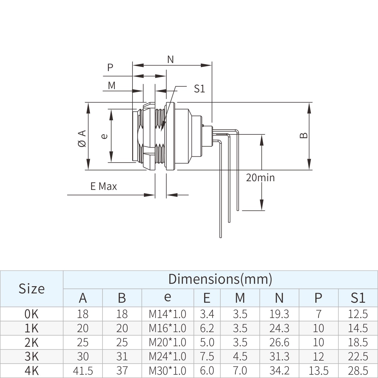 | 4K | 41.5 | 37 | M30*1.0 | 6 | 7 | 34.2 | 13.5 | 28.5 |