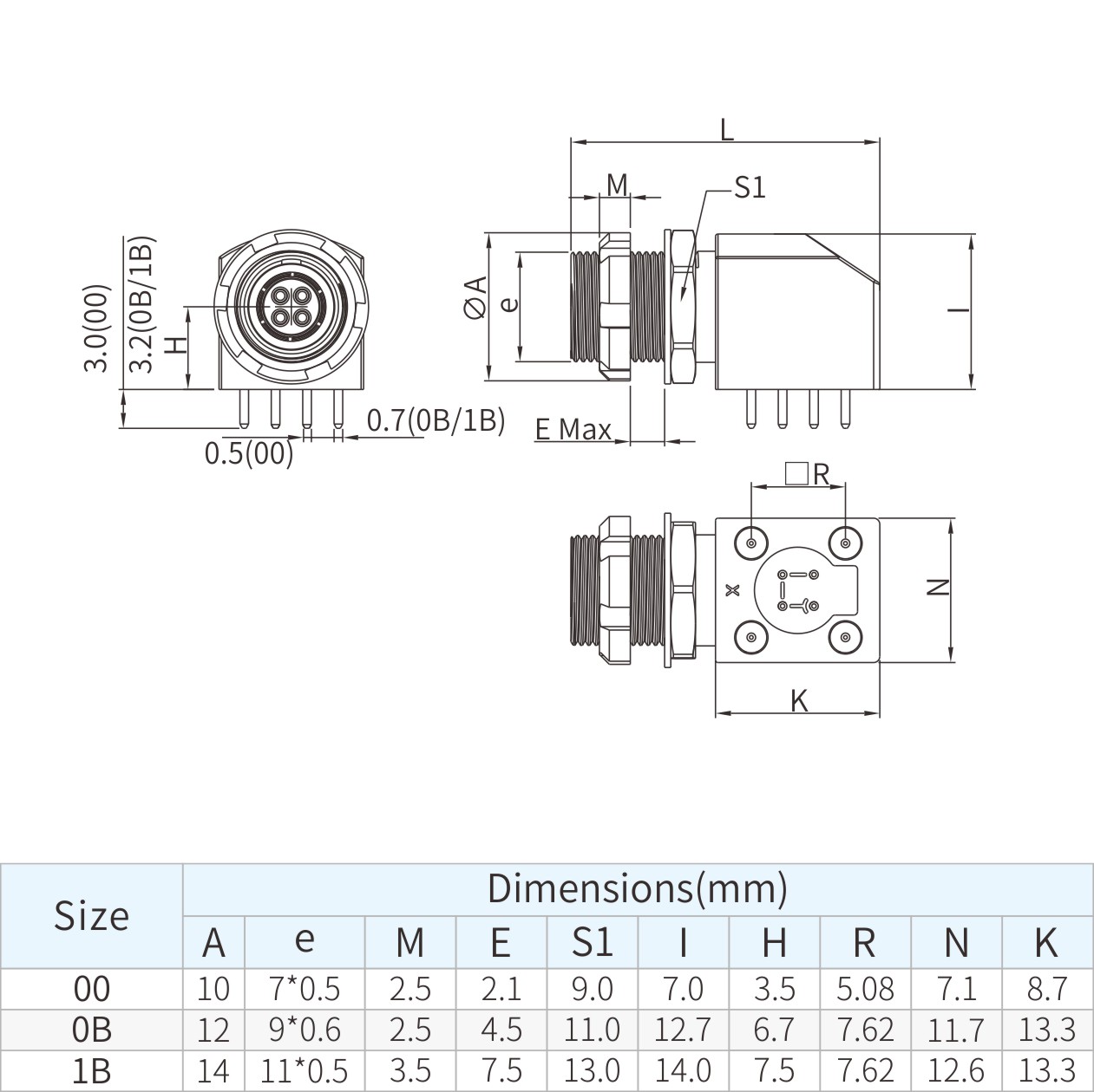 | 0B | 12 | M9*0.6 | 2.5 | 6.0 | 11.0 | 12.7 | 6.7 | 7.62 | 11.7 | 13.3 |