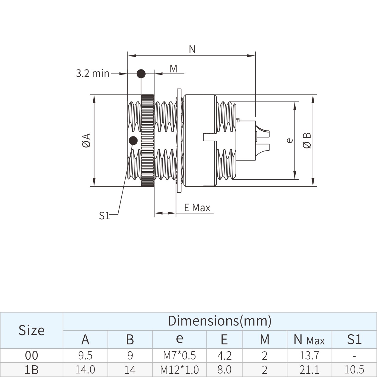 | 1B | 14.0 | 14 | M12*1.0 | 8.0 | 2 | 21.1 | 10.5 |