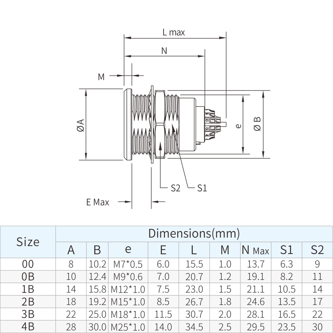 | 0B | 10 | 12.4 | M9*0.6 | 7 | 20.7 | 1.2 | 19.1 | 8.2 | 11 |