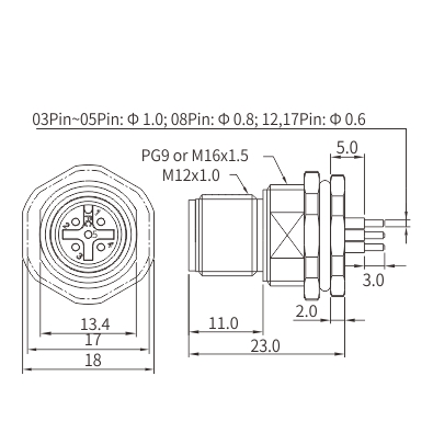 | 17 pins | A | 1.5A | 30V | 30V | PCB |