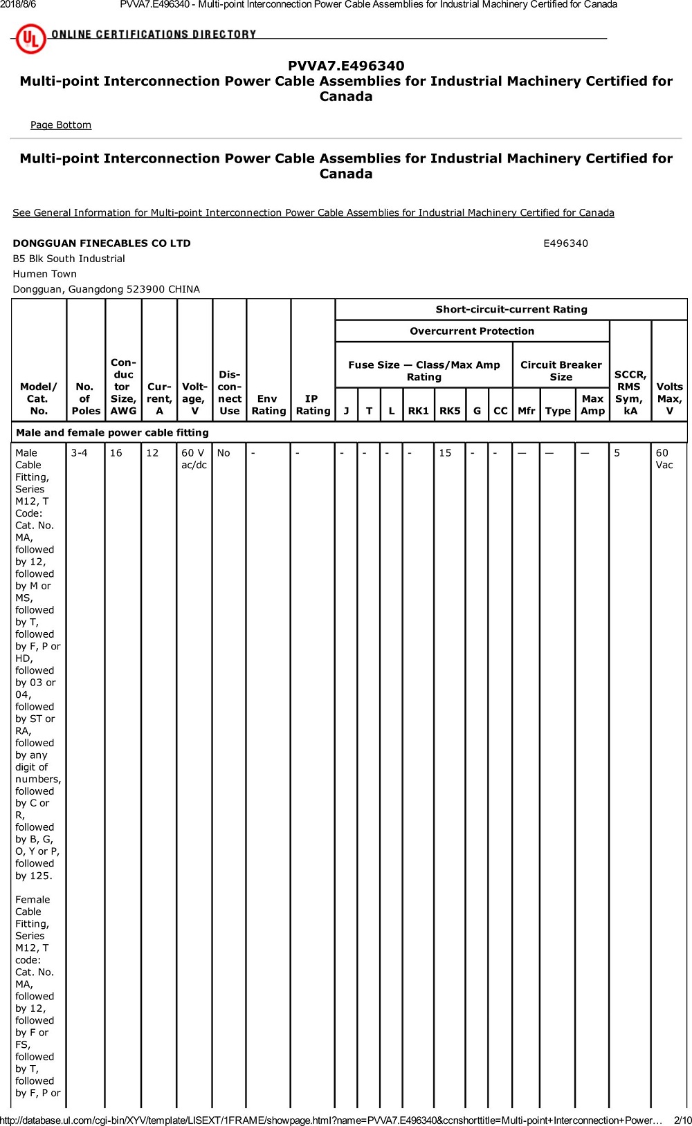 Contacts  Rated currentVoltageWire gauge/sizeCable