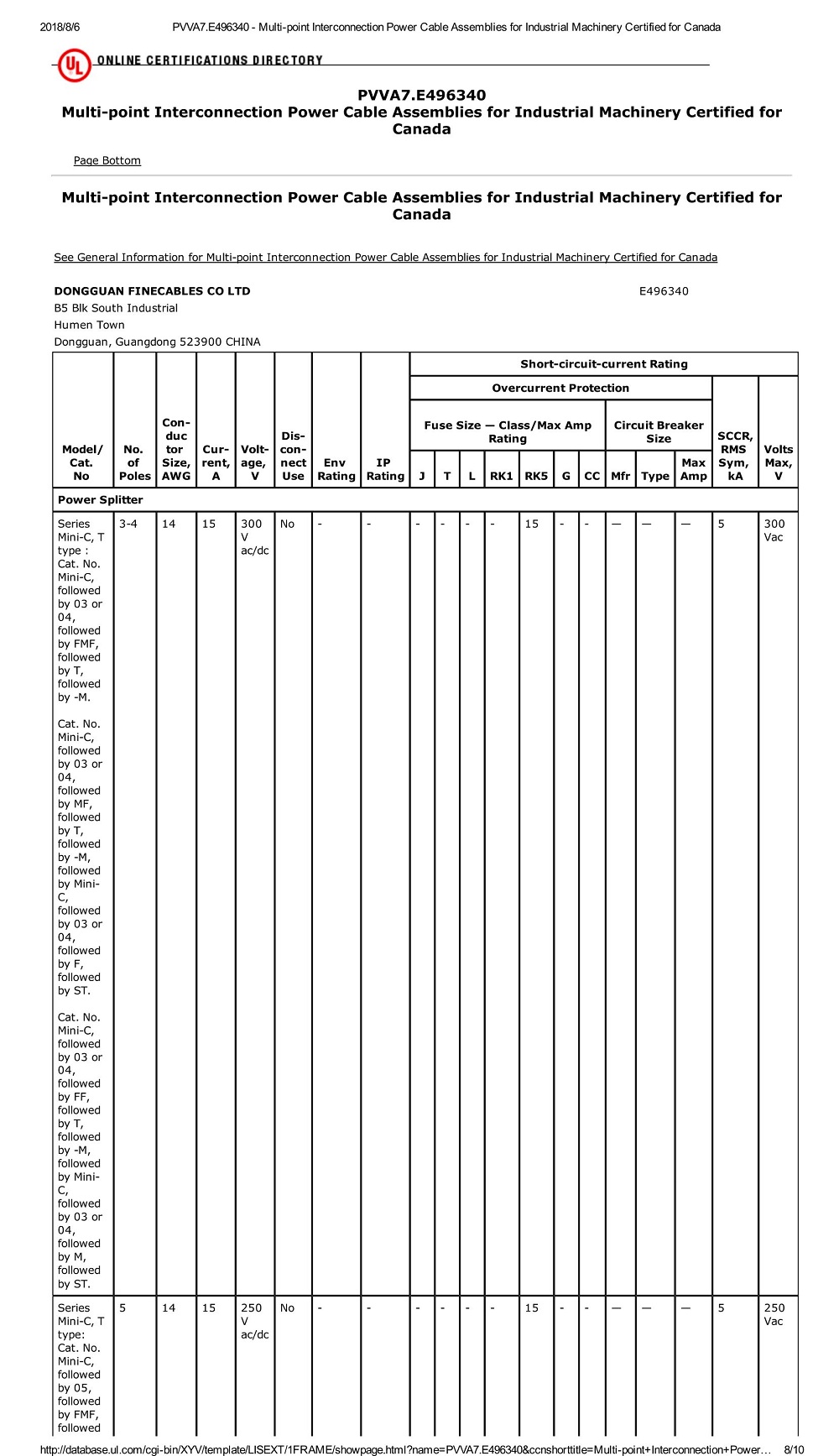 Please refer to UL Certificate for Canada link: http://database.ul.com/cgi-bin/XYV/template/LISEXT/1FRAME/showpage.html?name=PVVA7.E496340&ccnshorttitle=Multi-point+Interconnection+Power+Cable+Assemblies+for+Industrial+Machinery+Certified+for+Canada&objid=1087896128&cfgid=1073741824&version=versionless&parent_id=1083496411&sequence=1