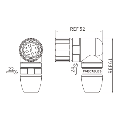 M23 Male Housing+Male Thread Signal Assembly Shielded Right Angle Connector