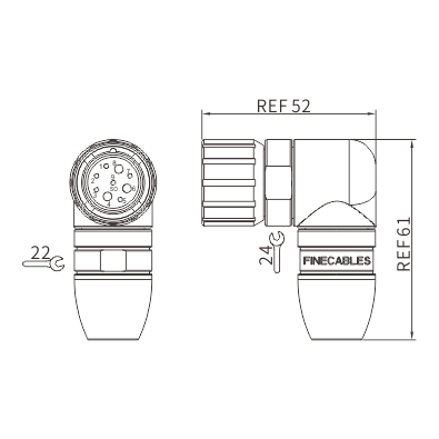 M23 Female Housing+Male Thread Signal Assembly Shielded Right Angle Connector