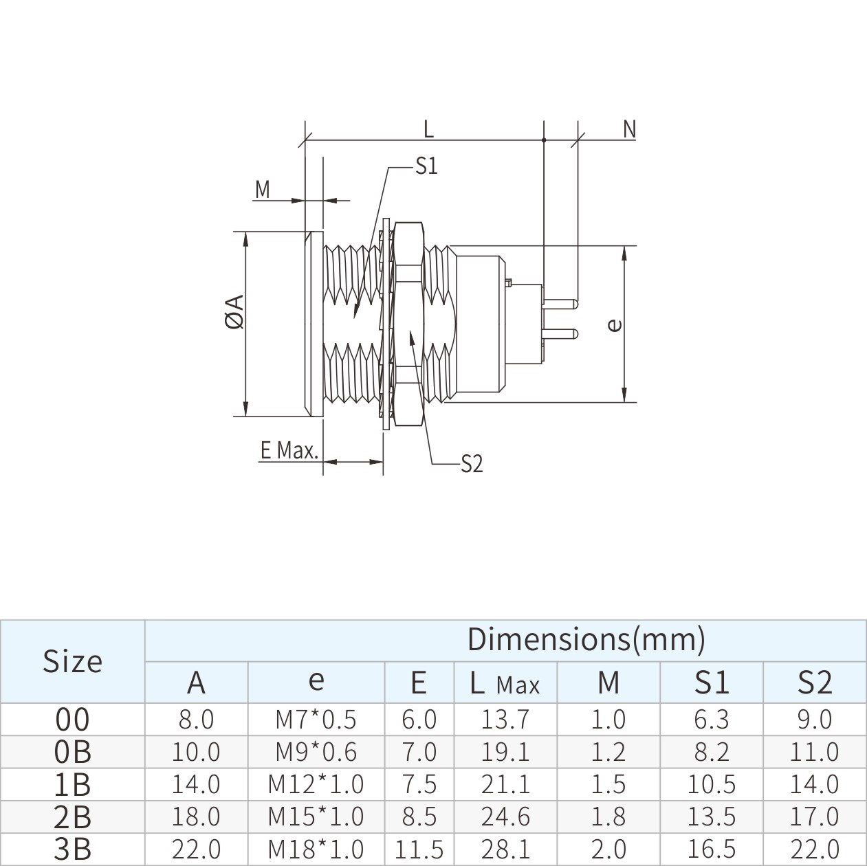 | 3B | 22 | M18*1.0 | 11.5 | 28.1 | 2.0 | 16.5 | 22 |