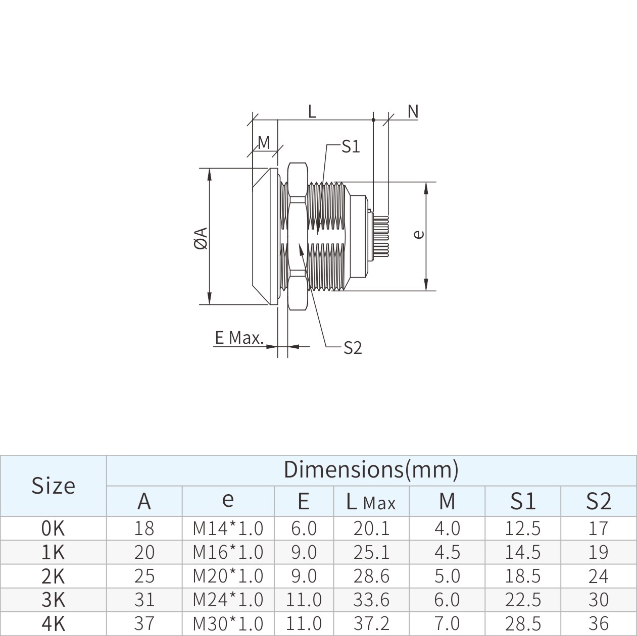 | 4K | 37 | M30*1.0 | 11 | 37.2 | 7 | 28.5 | 36 |