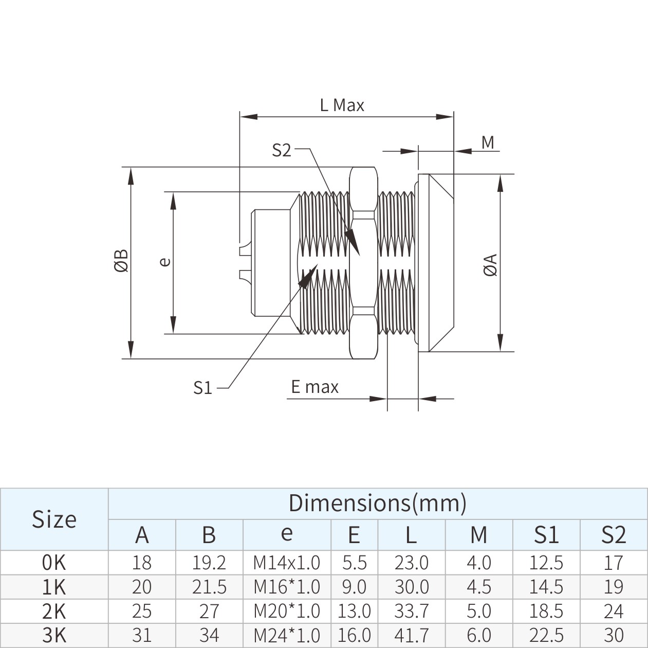 | 3K | 31 | 34 | M24*1.0 | 16 | 41.7 | 6.0 | 22.5 | 30 |