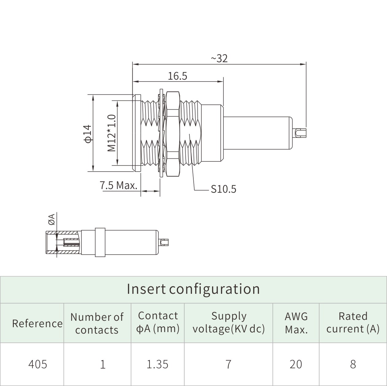 ReferenceNumber of contactsContact   φA(mm)Supply   voltage(KV dc)AWG   Max.Rated   current(A)