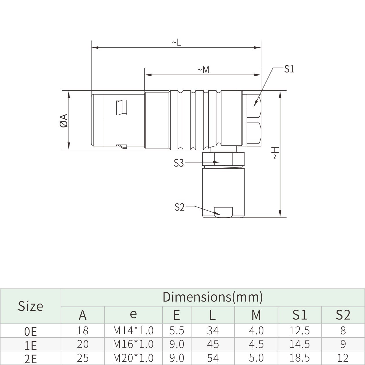 | 0E | 18 | M14*1.0 | 5.5 | 34 | 4 | 12.5 | 8 |