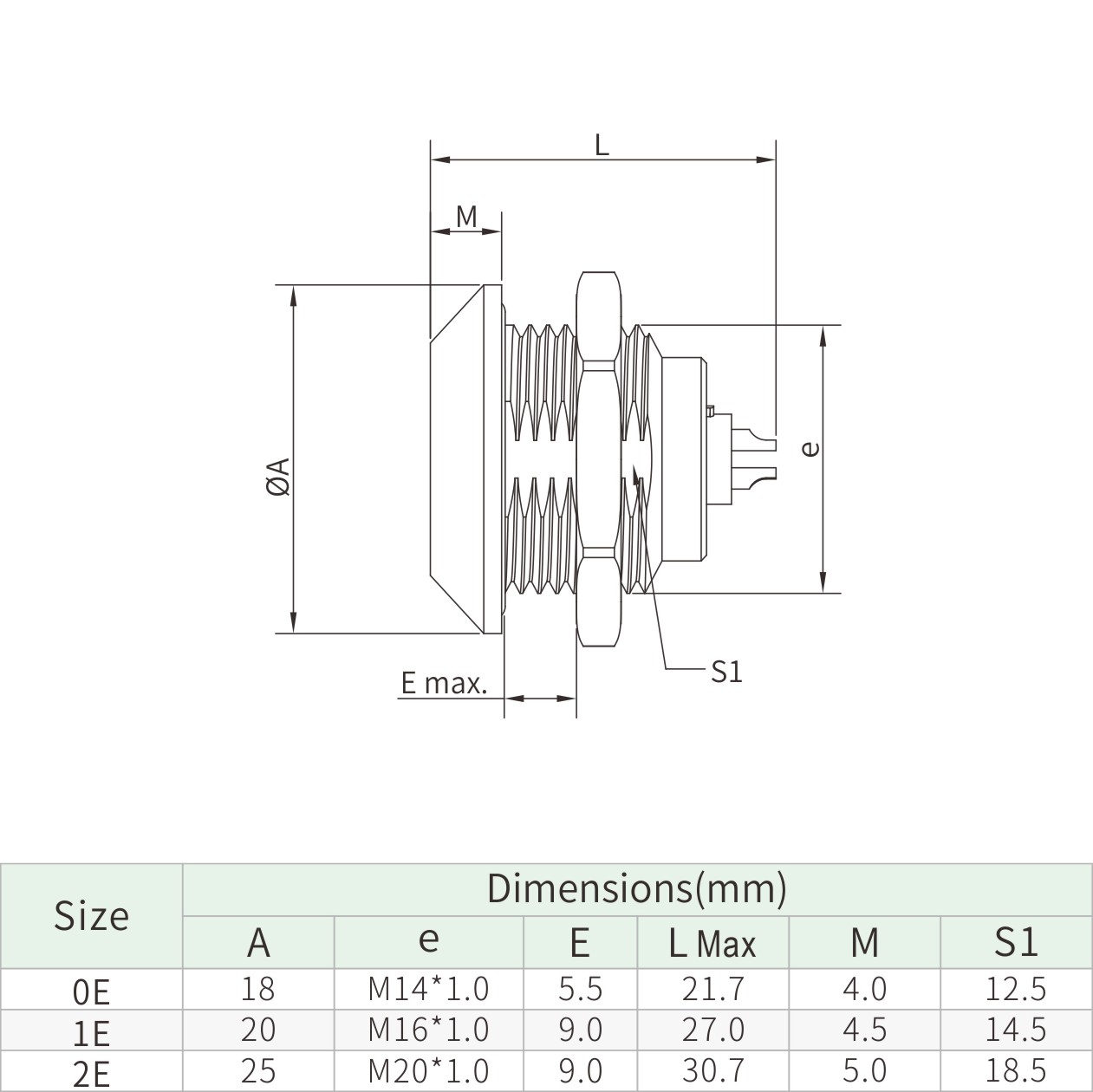| 0E | 18 | M14*1.0 | 5.5 | 21.7 | 4 | 12.5 |