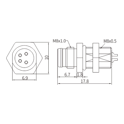 | 04 pins | 3A | 30V | 30V | 24 | 0.25 | Solder | PVC wire or Customized | MB08MSARI04ST |
