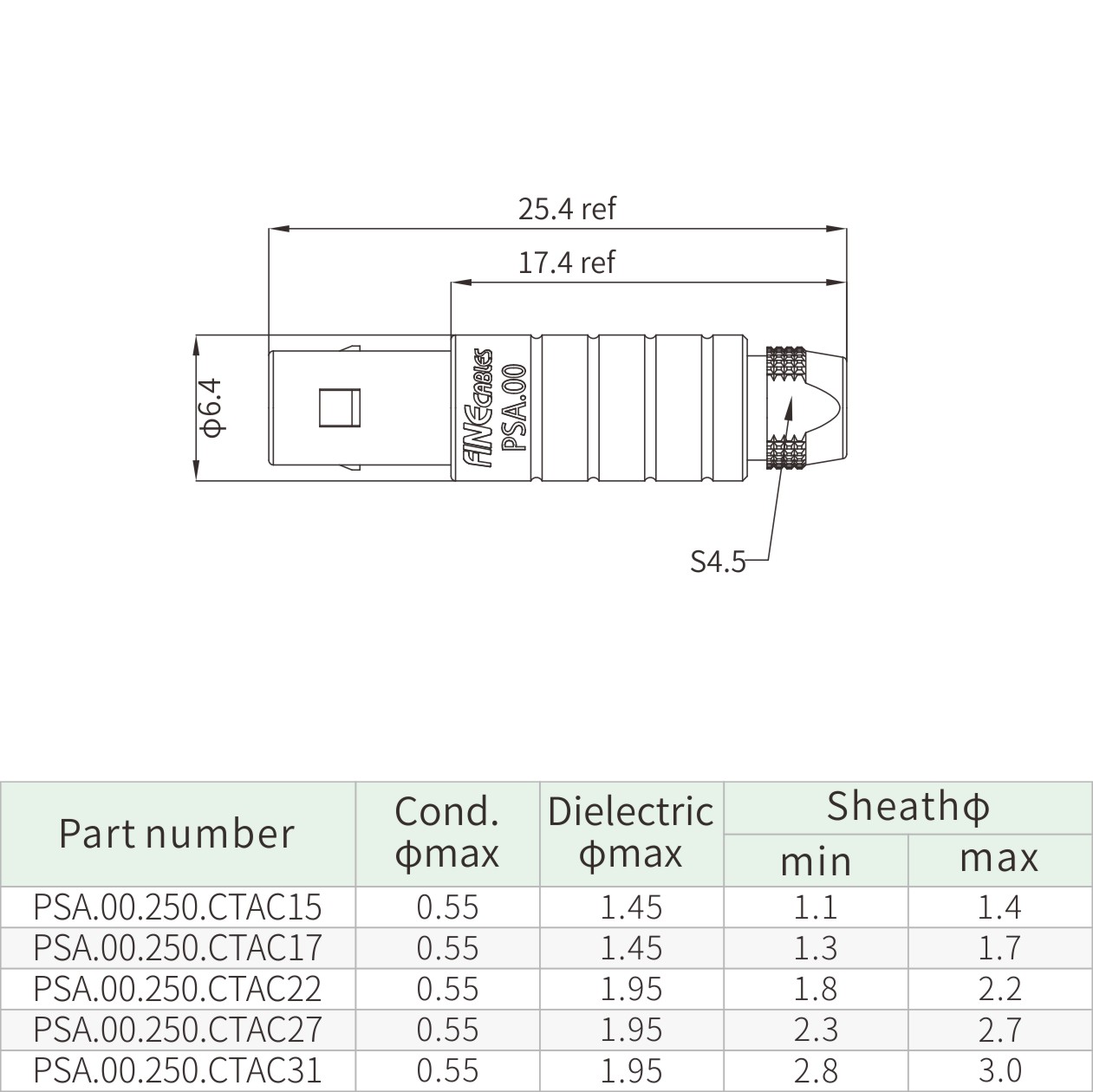 | Part Number | Cond. Φmax | Dielectric φmax | Sheathφ | |