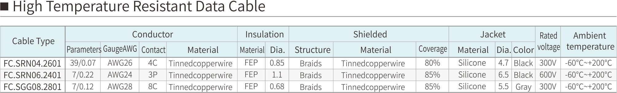 Current Location: Home > Product > High Temperature Resistant Data Cable