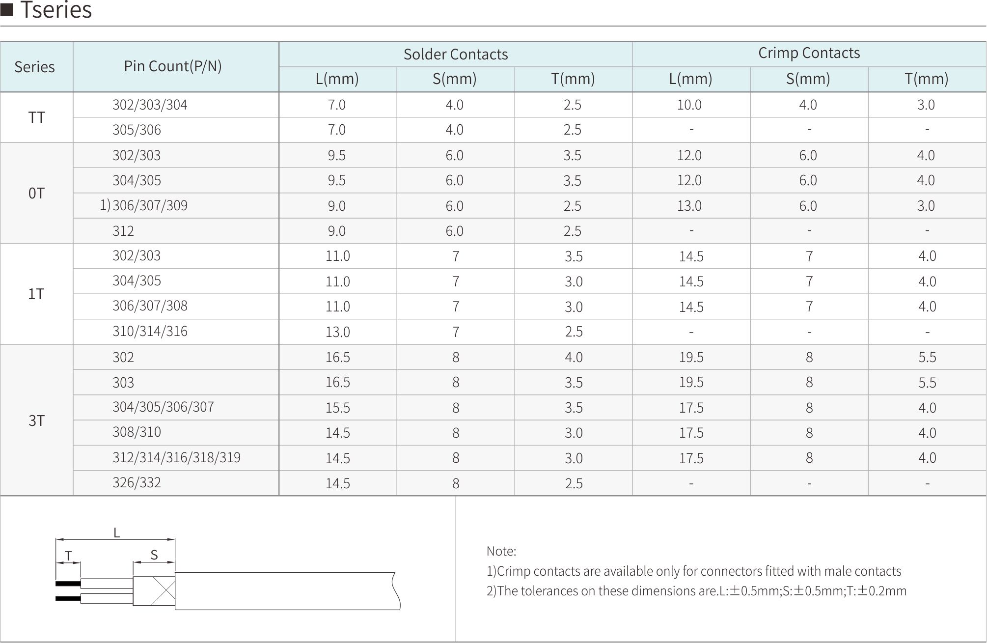 Part No:Cable Assembly Cable Stripping Lengths T Series