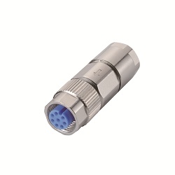 M12 field assembly, 360 degree shielded, crimp type connector has very reliable connection by using circular thread locking structure design and suitable for compact space; except insert, all parts are metal parts so as to make the whole product excellent in visual and quality. This product can provide solutions for high vibration environments, and 360 degree shielding ensures its efficient electromagnetic compatibility interference protection and safe and reliable connection for data transmission. This product can be widely used in closed-circuit television, door control, passenger information systems, inverter/converter control, and train management roadside control in the fields of industrial automation, rail transit, ships and new energy. This company's product line also demonstrates the following competitive advantages: Firstly, the crimp terminal flange and crimping roller can be freely and flexibly matched to the selected cable range from AWG24-26; Secondly, developed 3 types of coding: A coding, B coding and D coding and except for the regular 3/4/5 contact layouts, now developed more sophisticated of 8 contacts; Thirdly, except non-metal component, all parts are comply with EN45445 fireproof certification standards; Fourthly, compliance with IEC industry standard 61076-2-101; Fifthly, waterproof level achieved the industry leading of IP67.